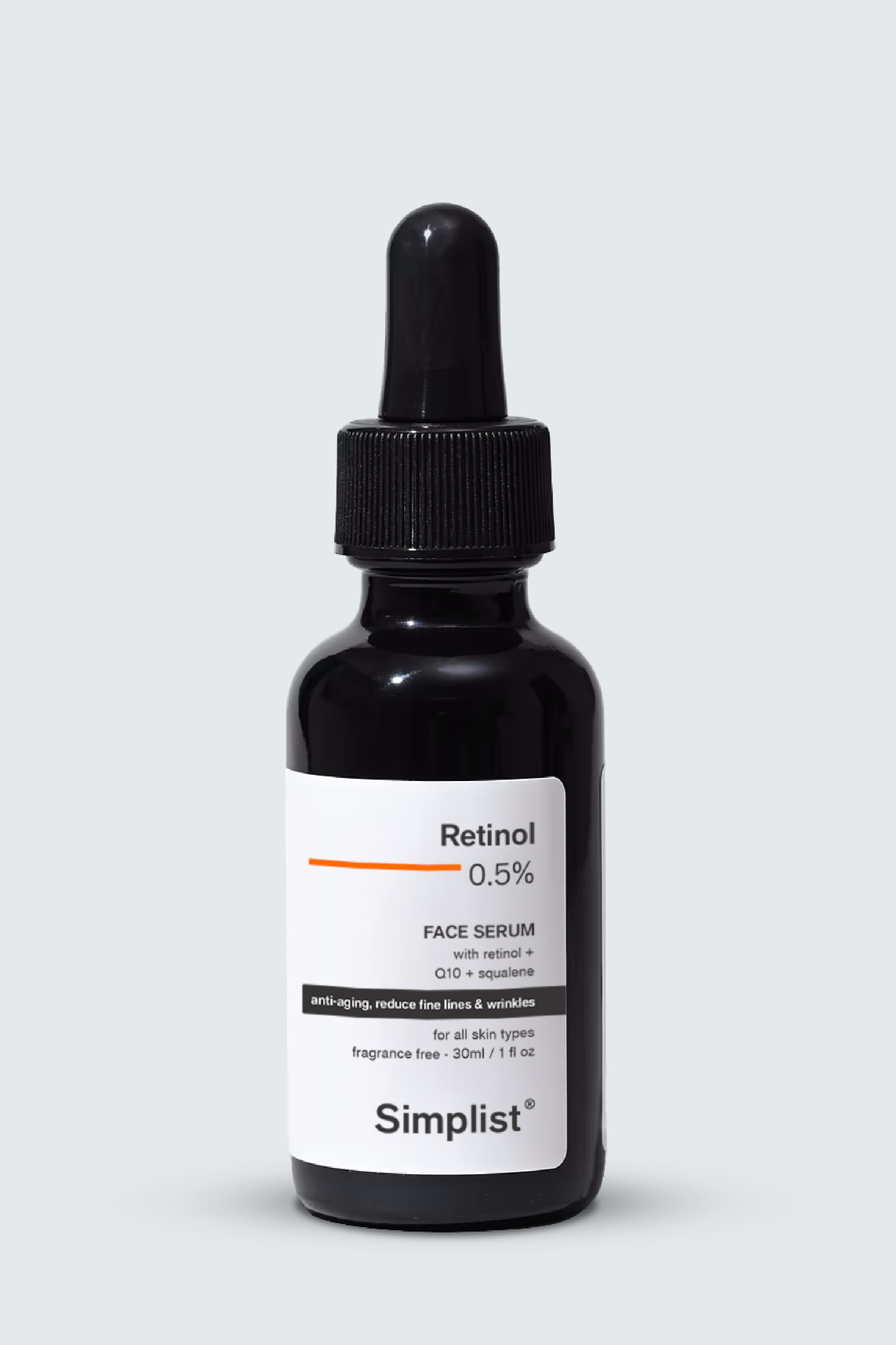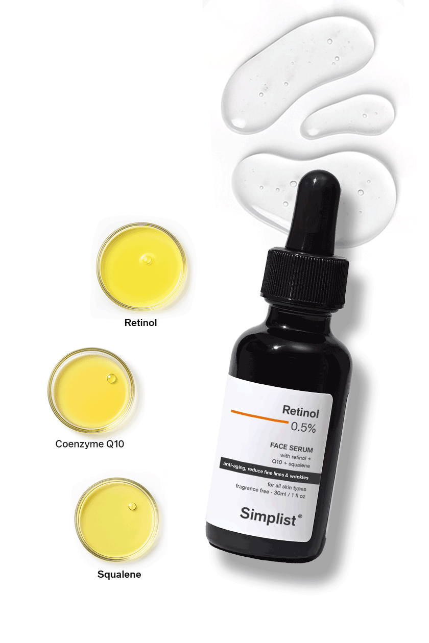 Retinol 0.5% Face Serum with Retinol, Q10, and Squalane helps reduce fine lines, wrinkles, and signs of aging. Q10 provides antioxidant protection, while Squalane deeply hydrates and nourishes for a firmer, smoother, and youthful complexion.
