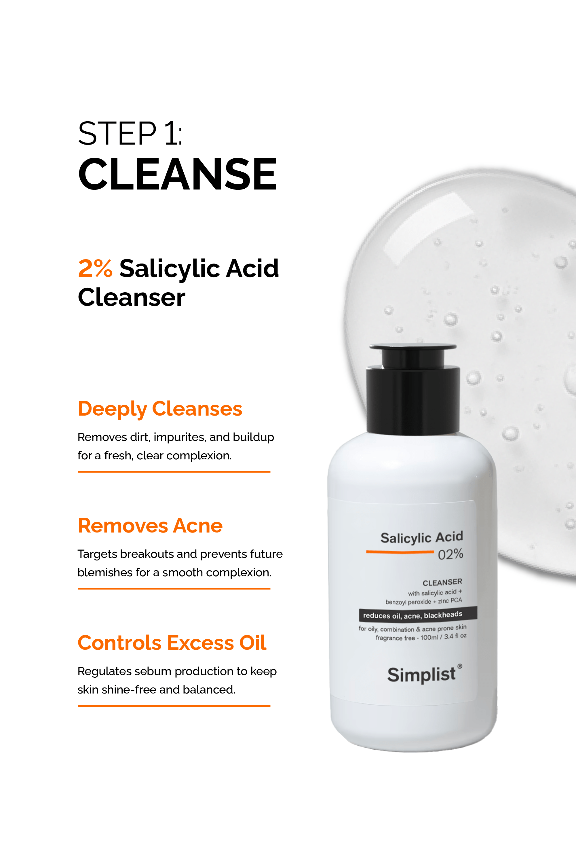 Salicylic Acid: Exfoliates deep into pores, removes excess oil, and helps clear acne & blackheads.