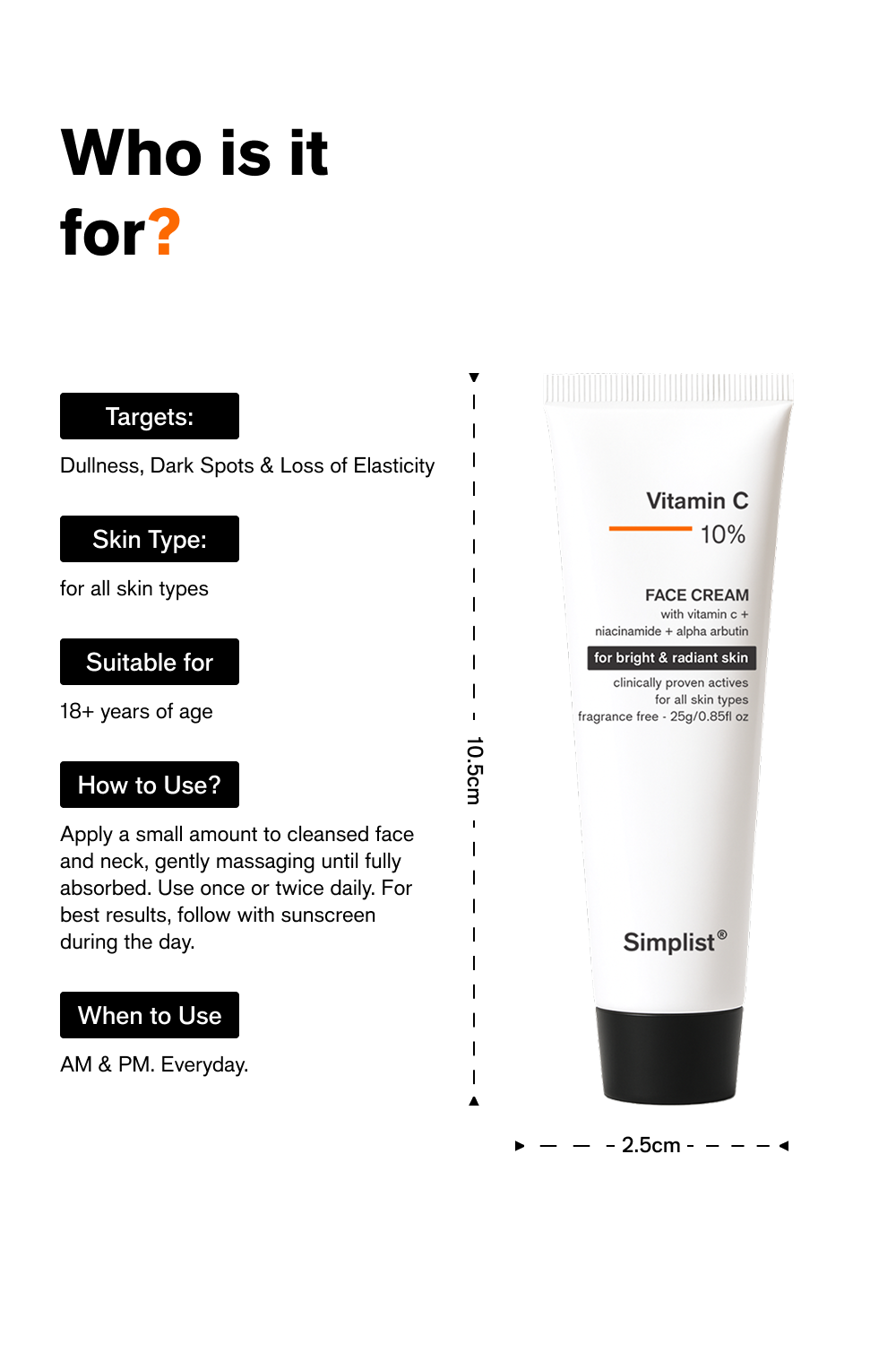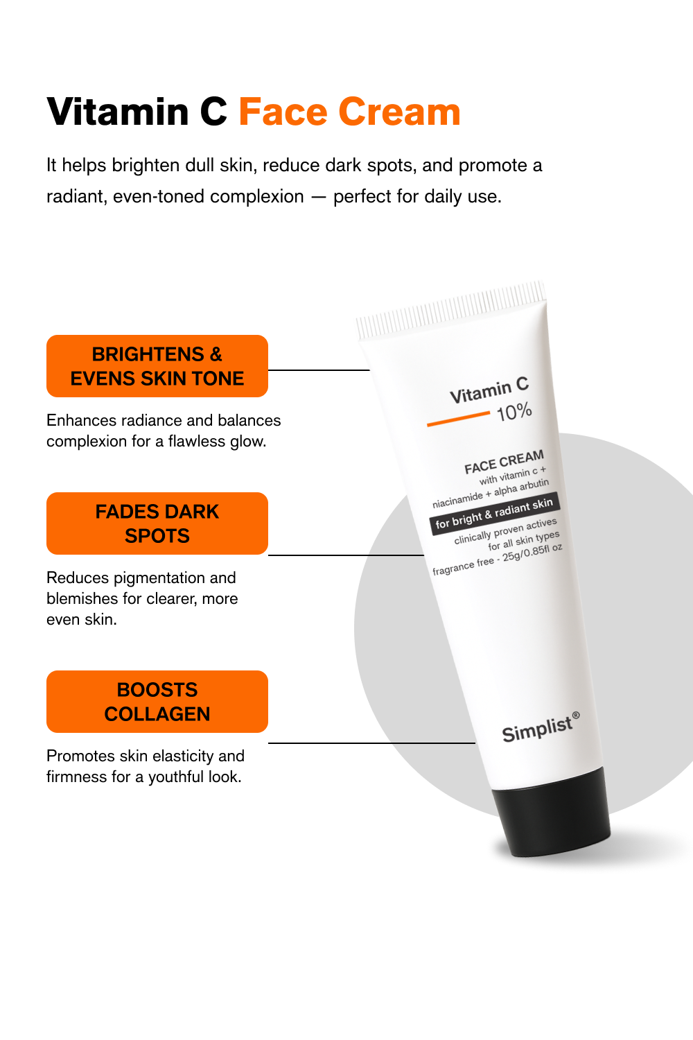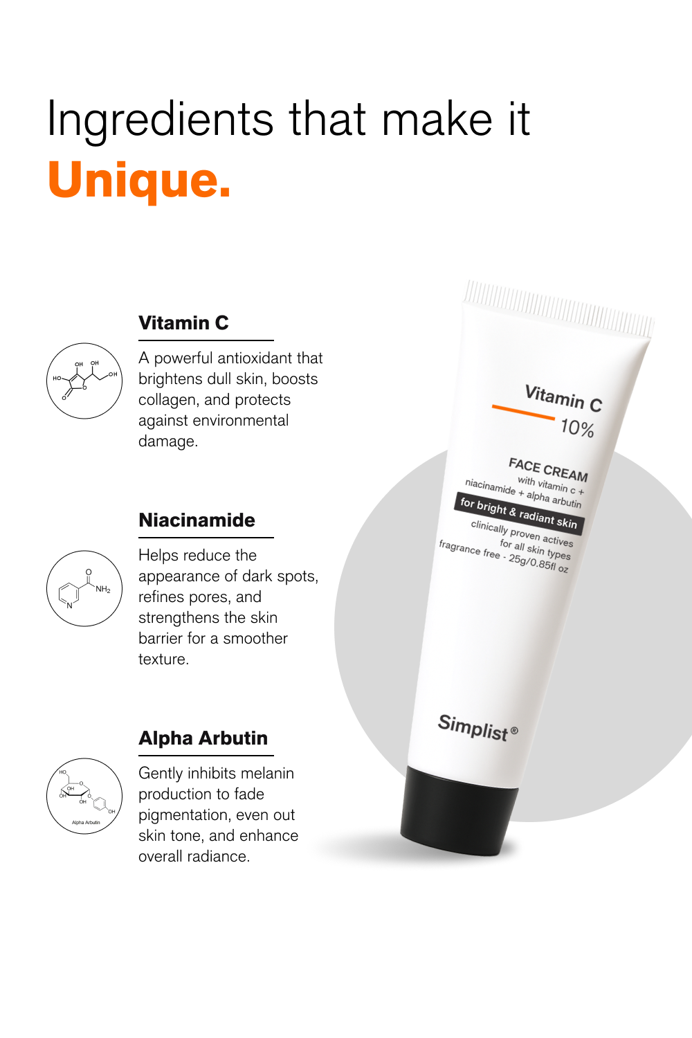 Vitamin C (10%): A powerful antioxidant that brightens dull skin, boosts collagen, and protects against environmental damage.